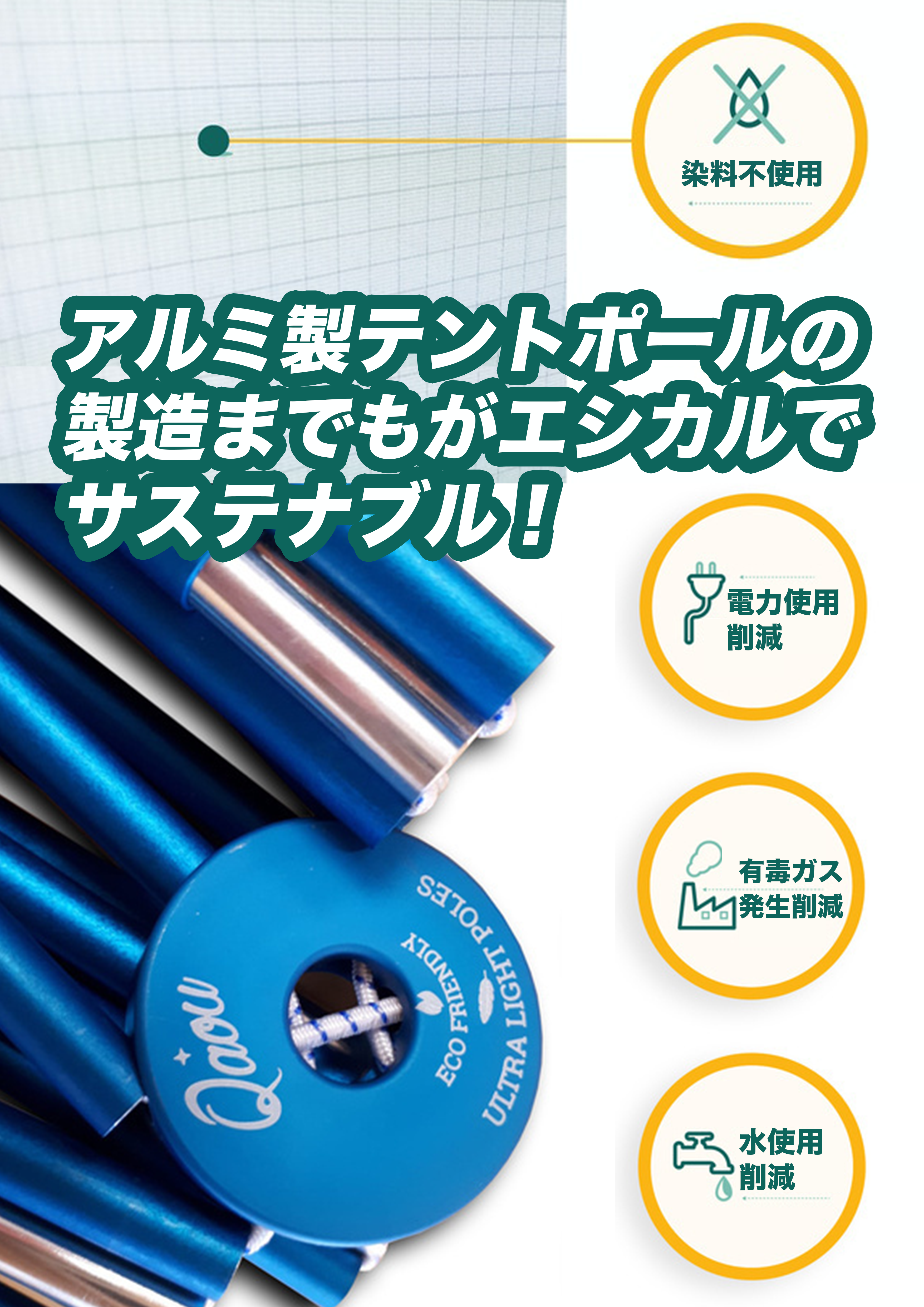 「Beluga(ベルーガ)」の骨でもあるアルミポールは、環境に優しい素材でかつ高い耐久性があります。風にも強いので安心してアウトドアをお楽しみいただけます。