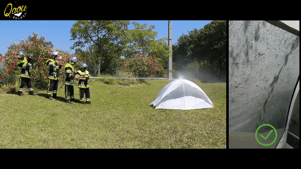 この消防士がテントにポンプで水をかけた実験は、2021年6月1日放送の日本テレビ『ヒルナンデス!』チョコバズNEWSショーで、丈夫なテントとして紹介されました!