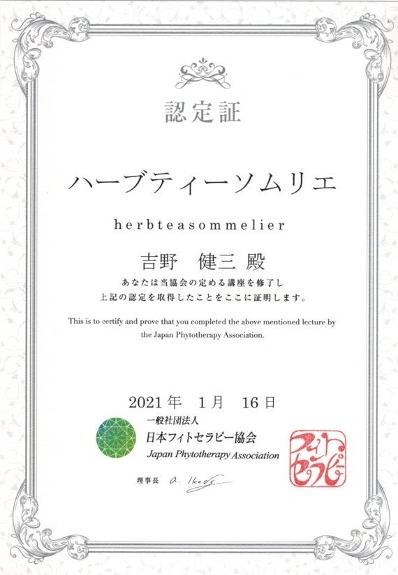 ハーブの加工や販売に役立つよう「ハーブティーソムリエ」の資格も取得しました。
