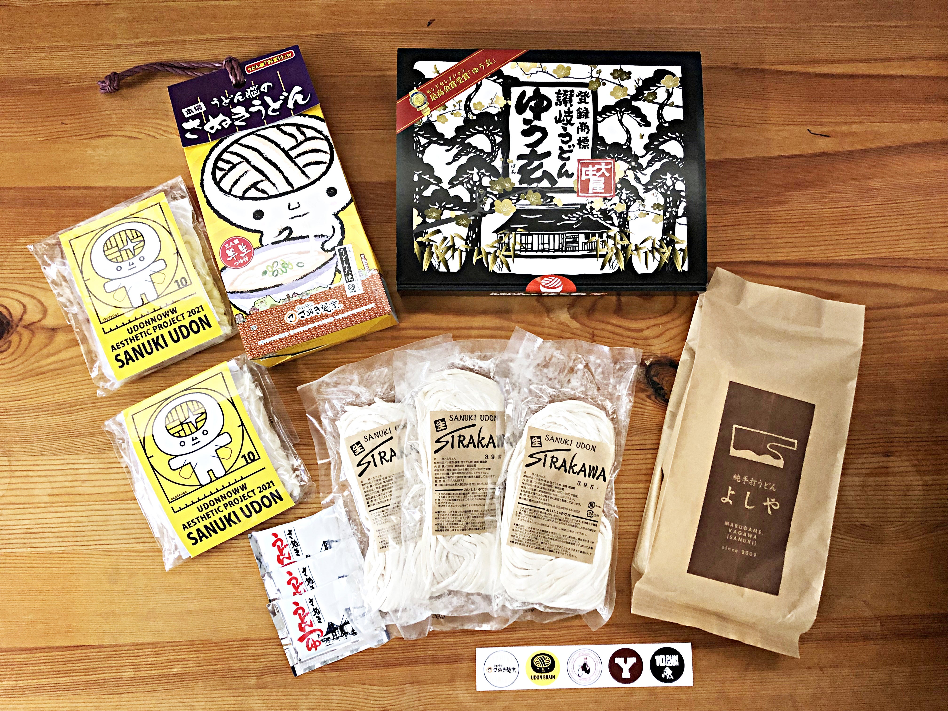 この『うどんセット』は、セカンドで登場したのですが、うどん脳くんお気に入りのお店を5店舗分、合計26玉!(各店舗の箱・包装しています。)