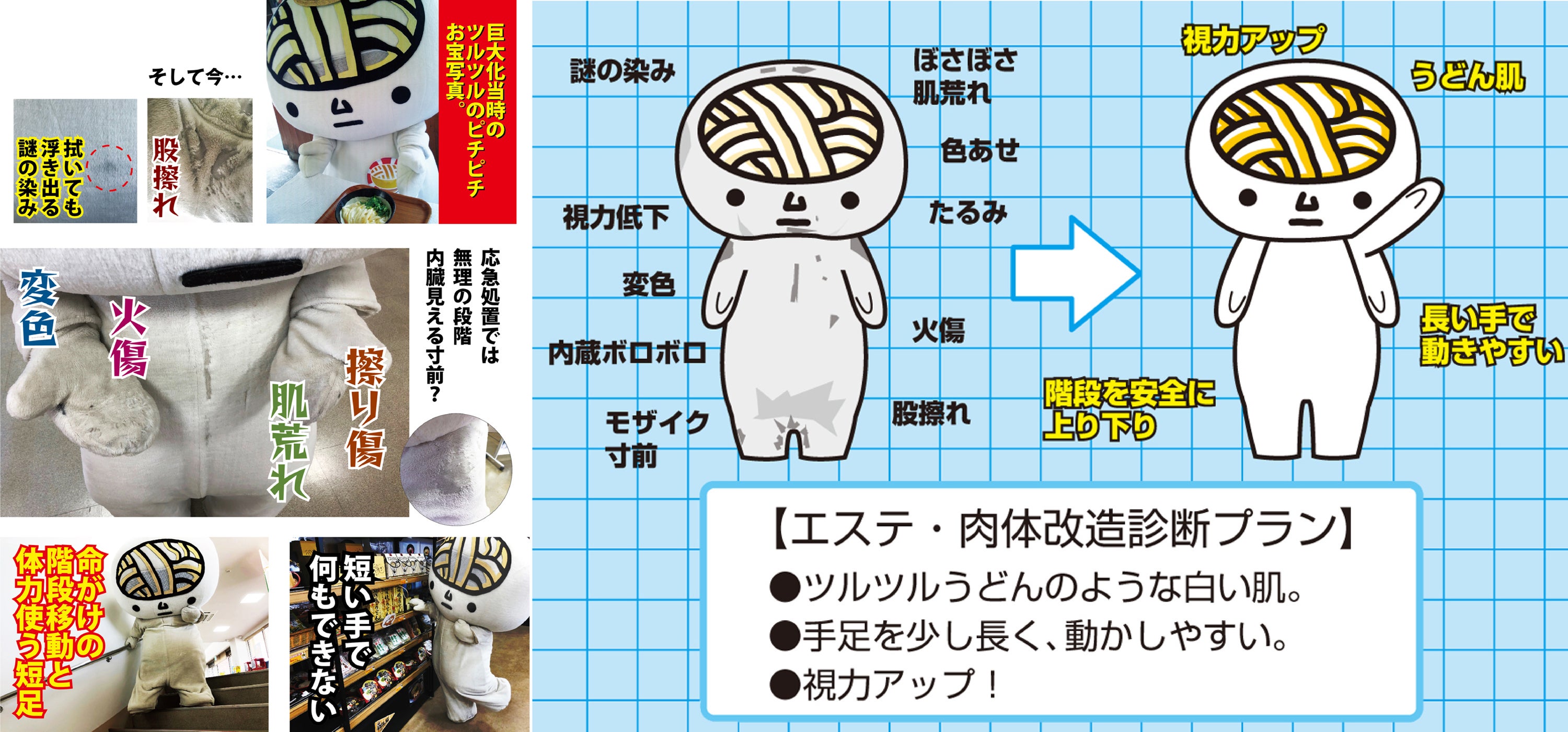 協会のある彦根市は、うどん脳の居る高松市と姉妹城都市として古くから交流があります。うどん脳も彦根市のひこにゃんと同じように、お肌の手入れには気を付けておられますが、やはり定期的なエステは必要です。皆様のご協力で、白い肌艶を取り戻して頂けることを願っております。