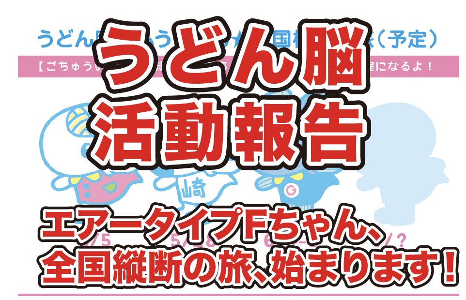 皆様にご支援いただきました「うどん脳Fちゃん全国縦断の旅』が、いよいよ香川県から飛び出し、スタートいたします!
