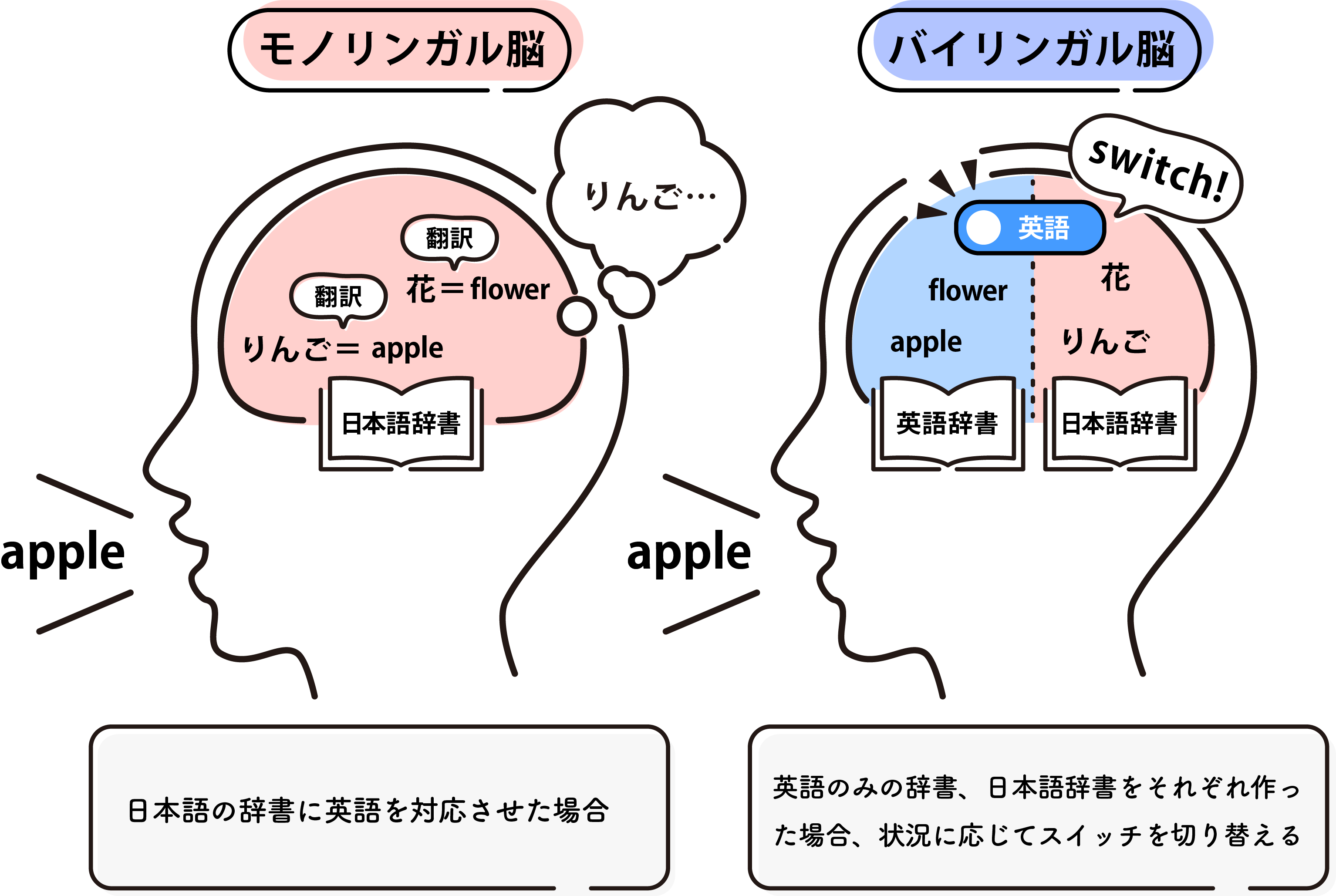新幹線のレールの上に、英語のモードをつくる訓練をすることです。新幹線のレールの上に、英語だけの辞書ができあがるようなイメージです。