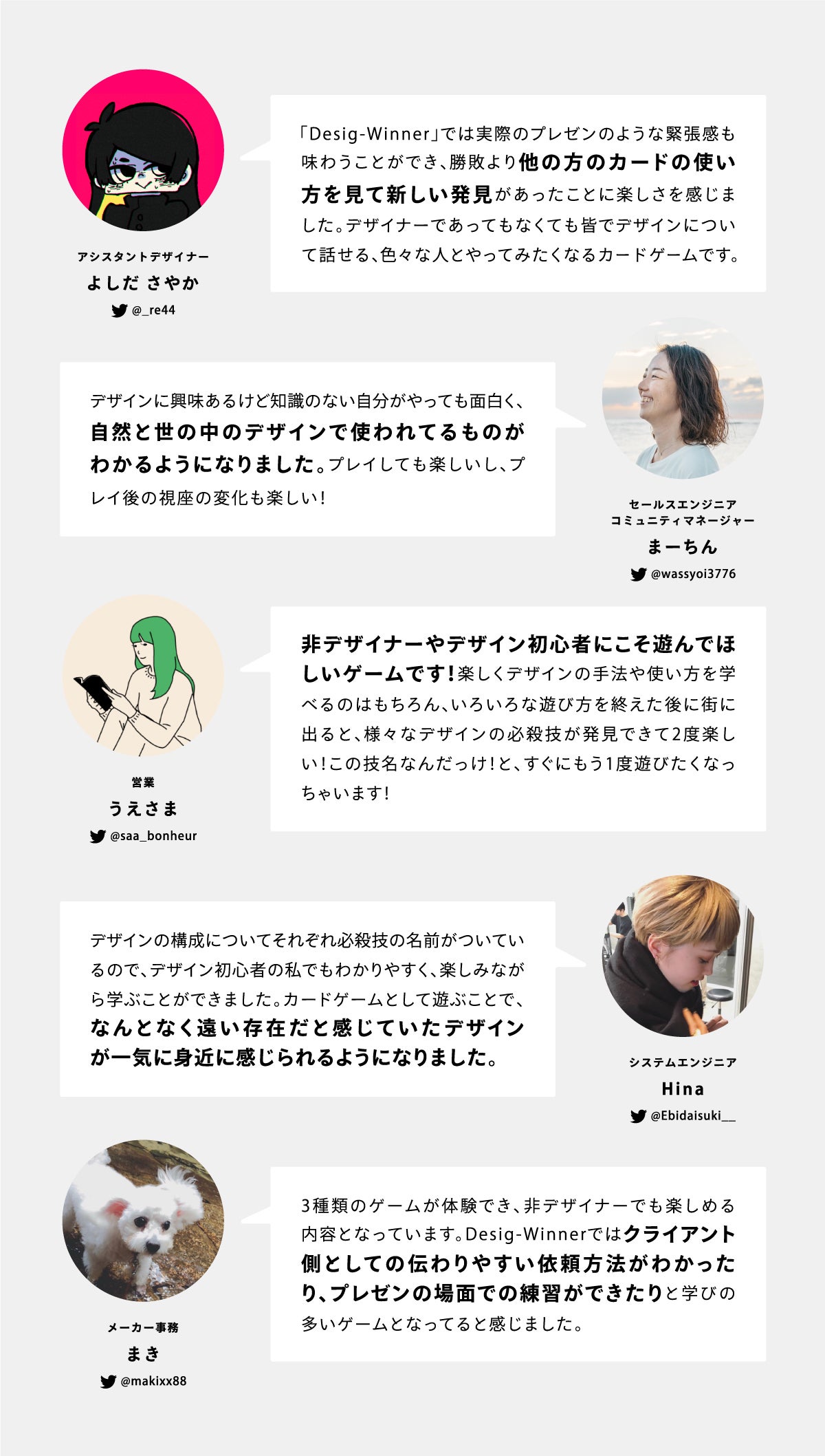 デザイン教育やデザイン会社の若手育成、独学でデザインを学んでいる人、これからデザインを学ぼうと思っている人、デザイナーではないけれどデザインを仕事に取り入れたい人など、このゲームがたくさんの人に届けば、世の中がきっとちょっと変わっていく。