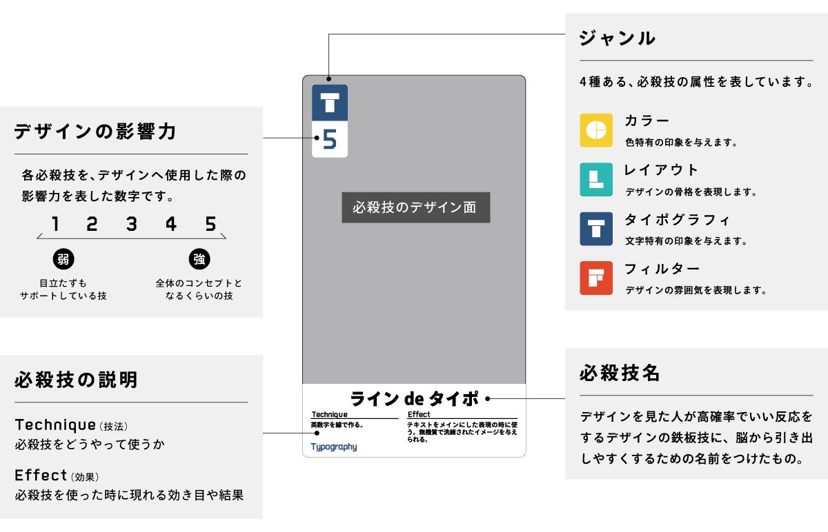 デザイナー同士がこのカードゲームを知っていれば、「ここに〇〇(必殺技名)を使おう」とすぐにイメージ共有できます。