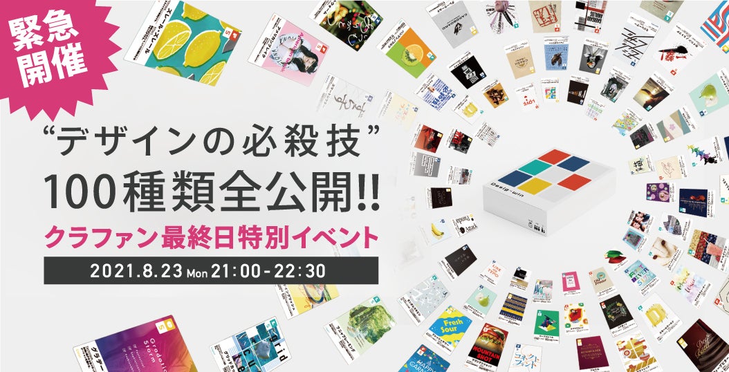 デザインの必殺技カードゲーム『Desig-win』が、お手元に届くまでのワクワクをより一層引き立たせるようなイベントになるのではないかと思っております。