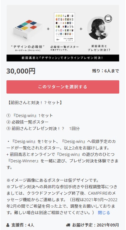前田さんと「Desig-winner」を遊べるリターンが......まだまだ絶賛発売中です!