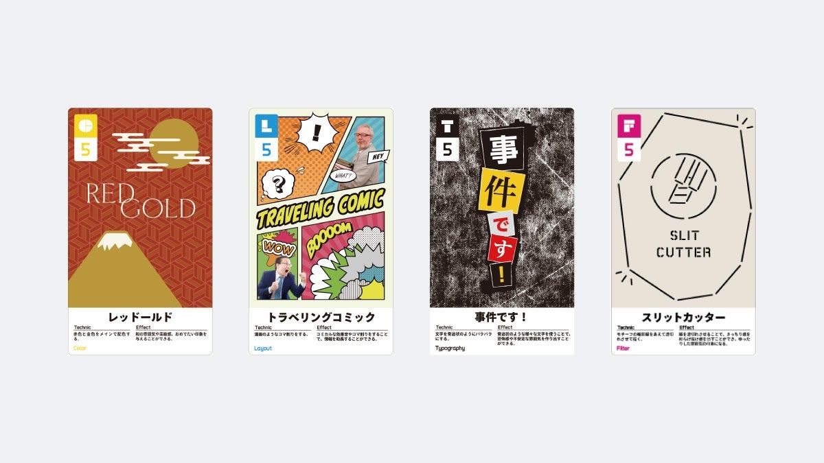 デザイナーは”お題”としてクライアントからの依頼を受けて、自分のイメージに合う”デザインの必殺技”カードを選択していきます。クライアントから選ばれることを目指して、イメージしたデザインをクライアントにプレゼンテーションしましょう!