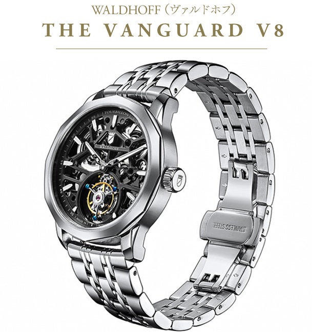 The Vanguard V8は、レーシングカーのエンジンにインスパイアされたスポーティなトゥールビヨンのデザインです。