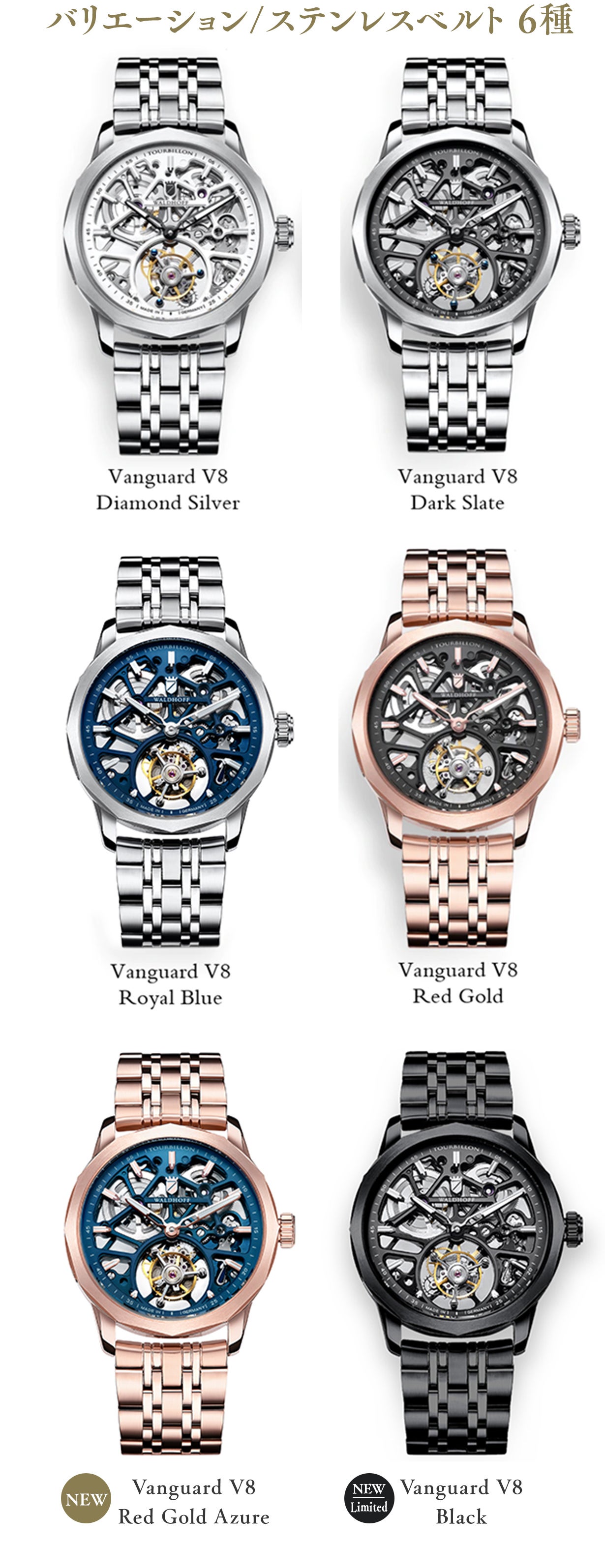 今回、machi-yaにて皆様に【WALDHOFF】をご紹介するにあたり、インペリアルとヴァンガード既存ラインナップに加え、新作カラー・限定モデル5種類をご用意しました。