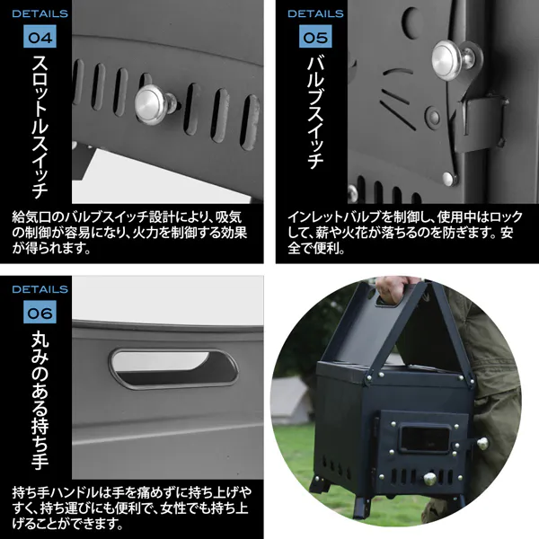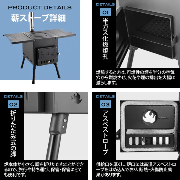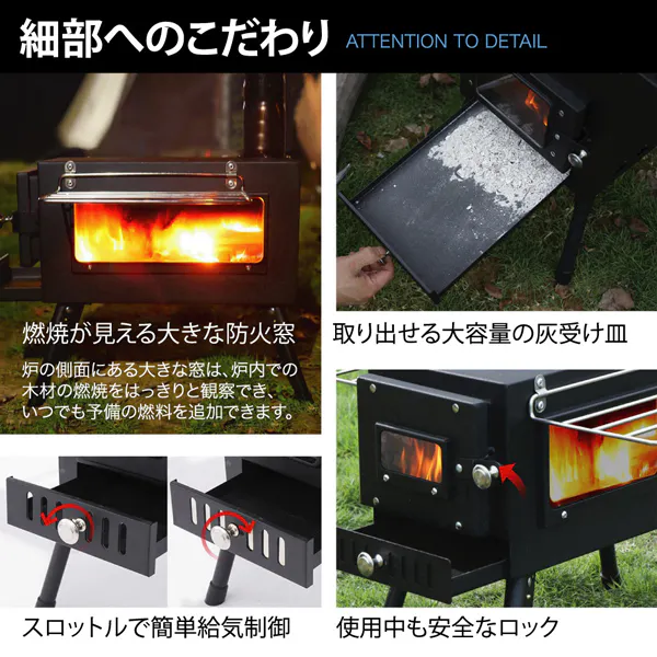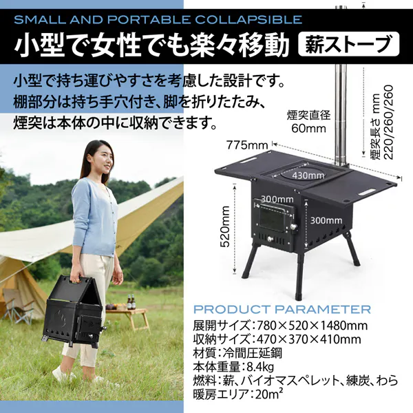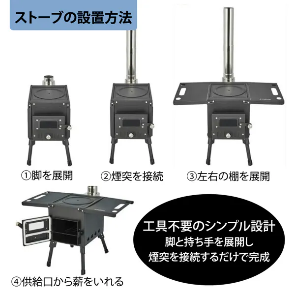 キャンプテント、釣りの拠点、ストーブは暖炉やBBQにも使用でき