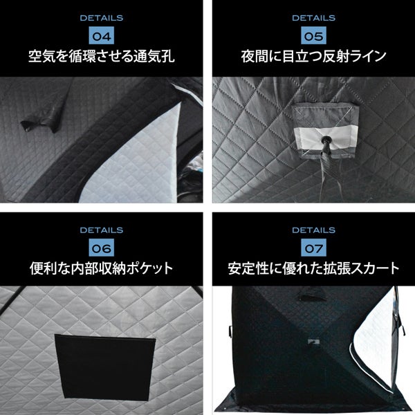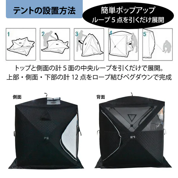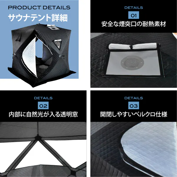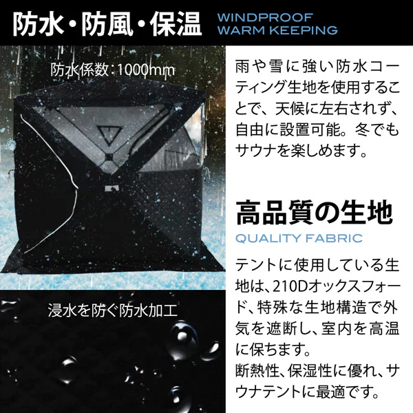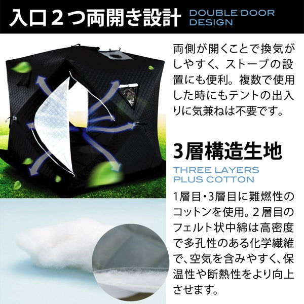サウナテントとしての用途以外に、キャンプテントや冬場の釣り拠点として