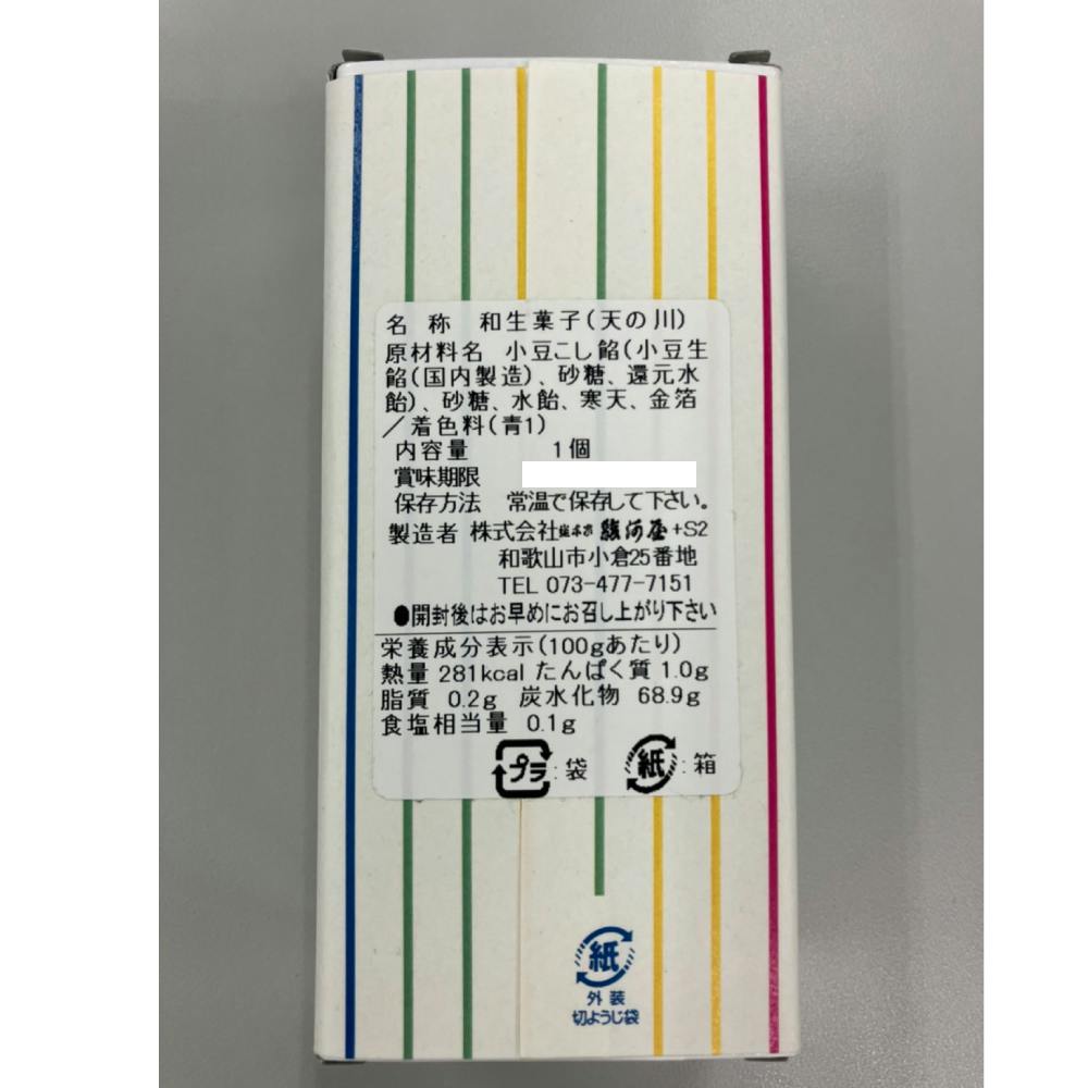 ■原材料名:小豆こし餡(小豆生餡(国内製造))、砂糖、還元水飴)、砂糖、水飴、寒天、金箔/着色料(青1)
