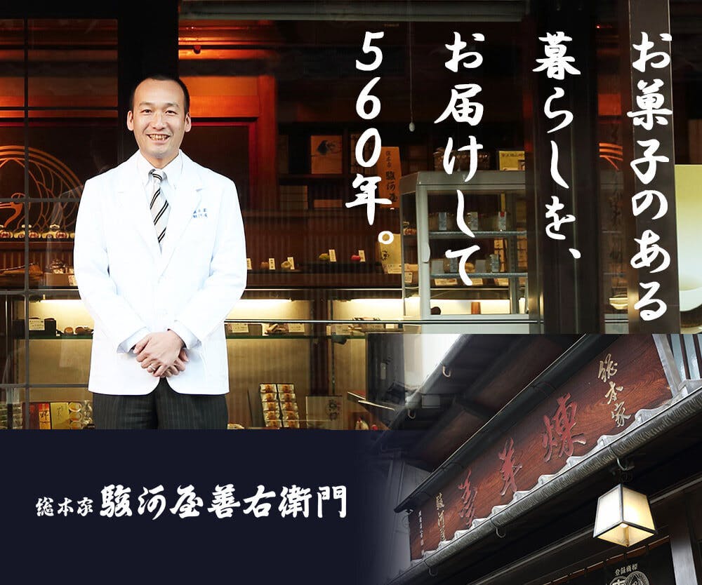 創業者の名を入れ原点に立ち戻り、新しい屋号「総本家 駿河屋善右衛門」として次代へと新たな歴史をつなぎ、たくさんの笑顔を作れるよう精進してまいります。