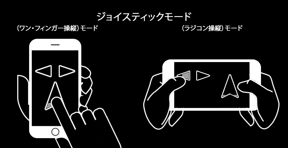 【ジョイスティックモード】に「ワン・フィンガー操縦モード」と「ラジコン操縦モード」の2種類があります。一般的なコントローラーに近いかたちで操作できます。