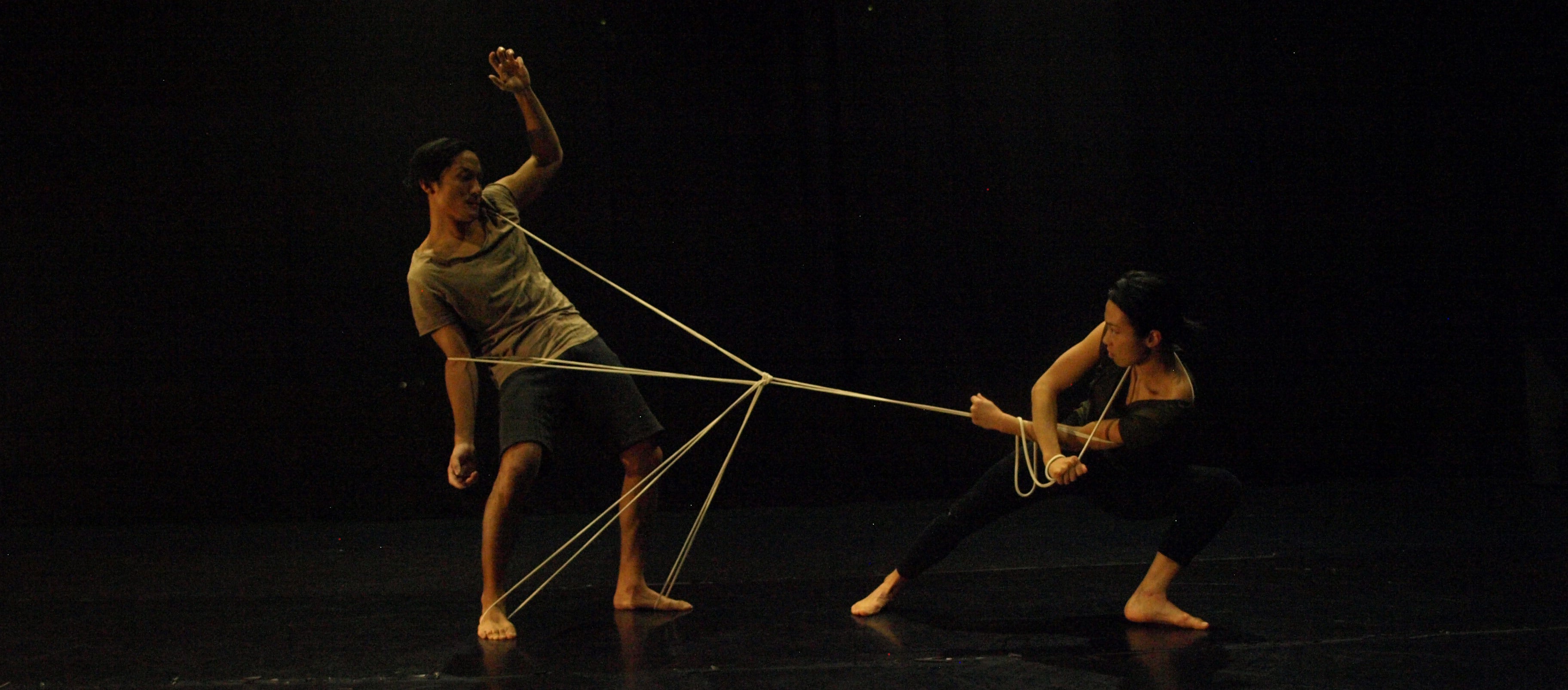 複雑に絡む⼆⼈のダンサーと1本の紐。