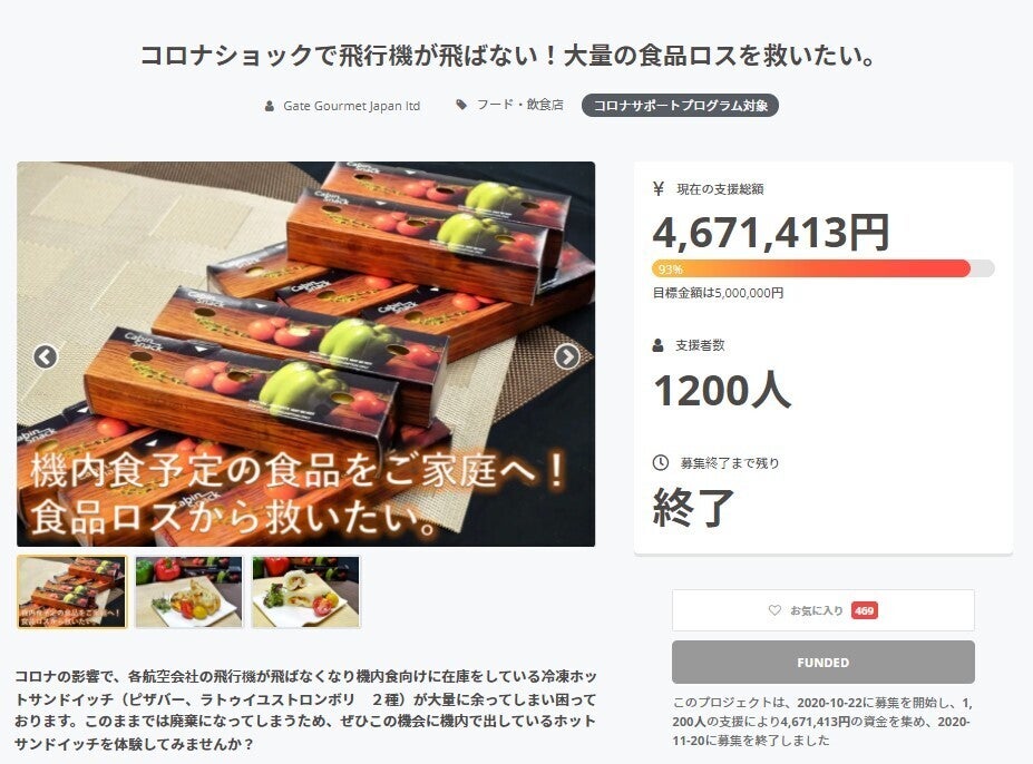 生き残りのため様々な施策を打っていく中で、海外から大量に輸入し使用することができず、賞味期限の迫っていたホットサンドイッチを”クラウドファンディング”の返礼品として支援を募ったところ、多くの方からご支援をいただき感謝しております。