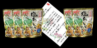 その「塩ちゃんこ鍋の素」を5個セット、10個セットにしてリターンいたします。消費税、送料等全て込みです。