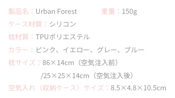 携帯式ネックピローは便利ですが、使う前に空気を入れて膨らませるのが面倒なものです。Urban Forestは、収納ケースがそのまま空気入れになります。ケースから枕を取り出したら、蓋を閉めて、空気注入口につなげて、20秒繰り返し押せばすぐ満タンです。