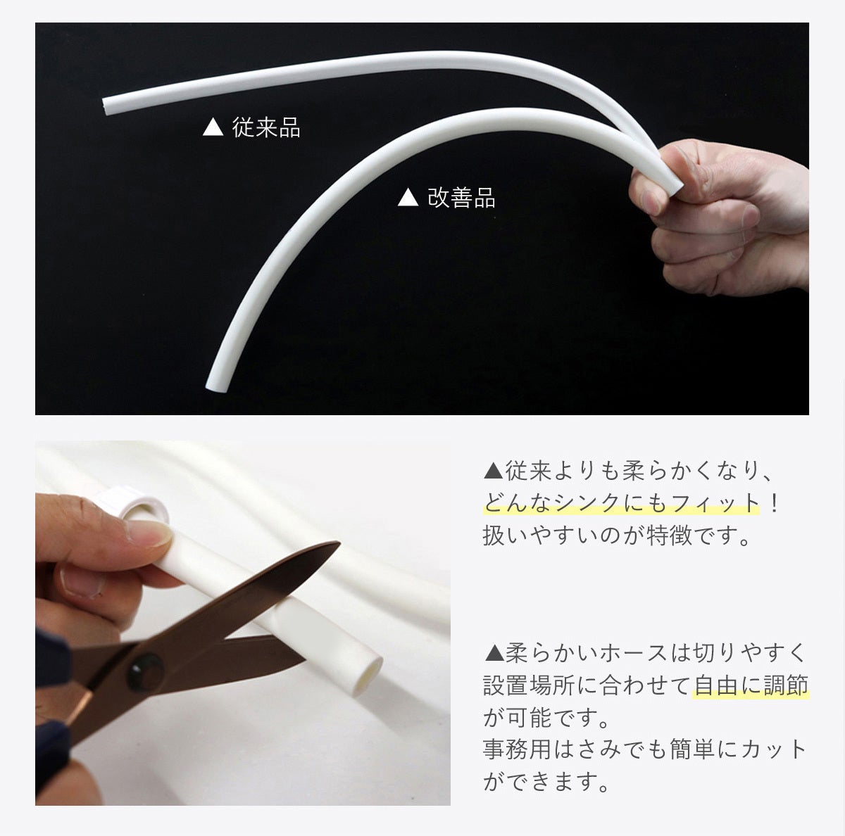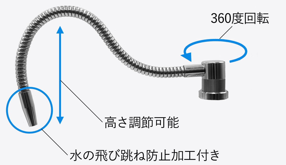 吐水管はしなやかで曲げやすいため、お好みの形でご使用いただけます。