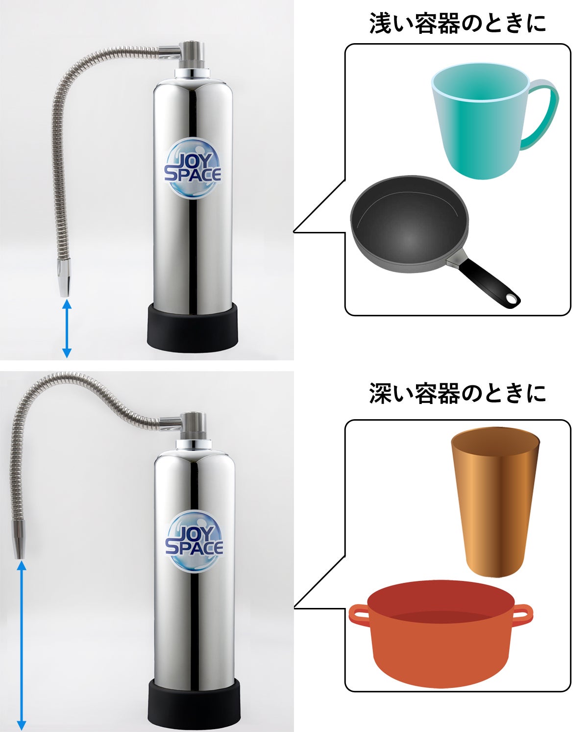 使用用途に合わせて吐水管の高さを自由に調節ができます。