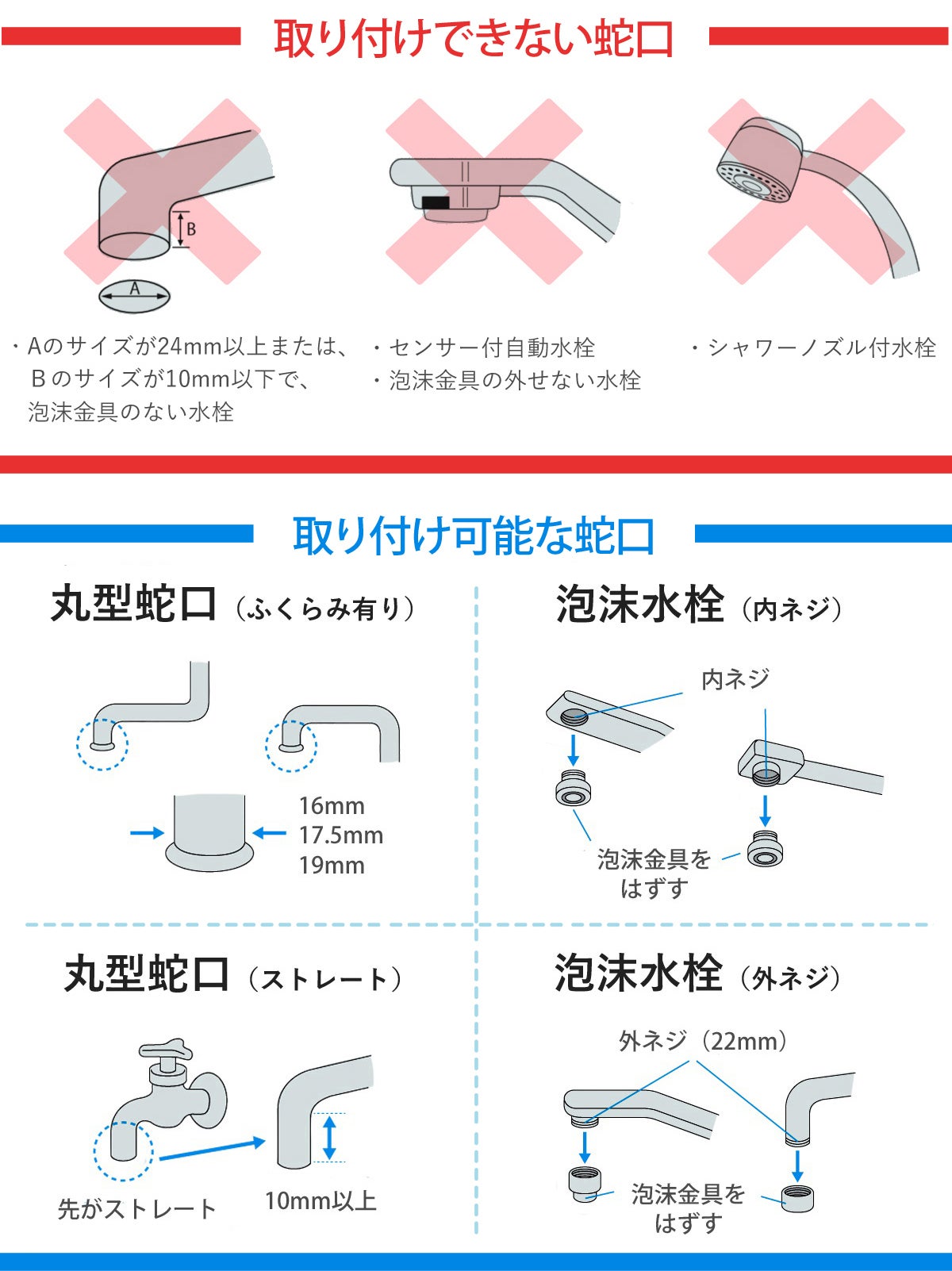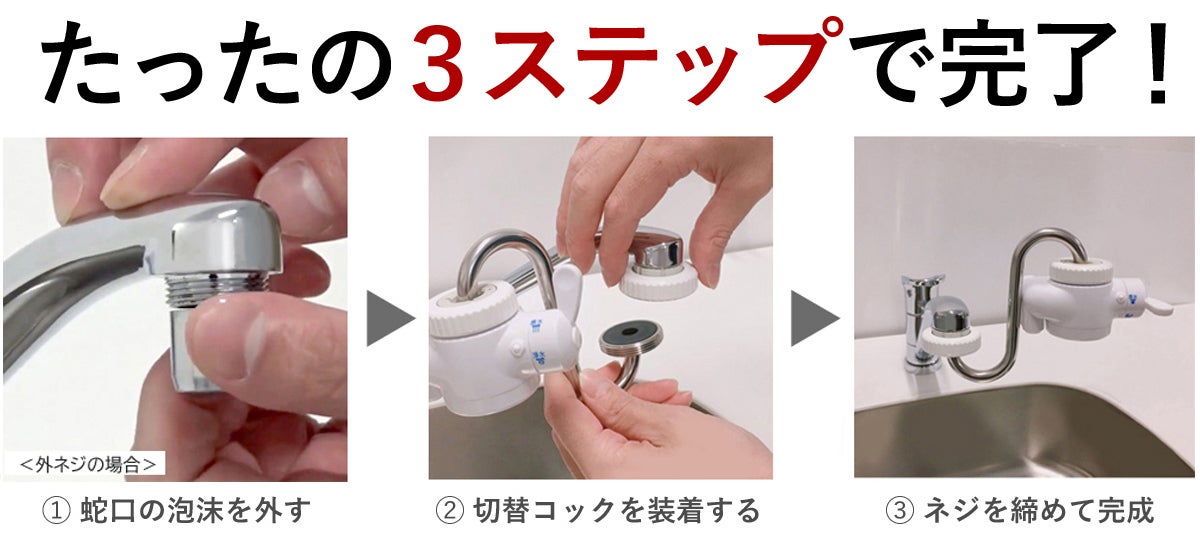 蛇口の泡沫を外し、切替コックを取り付けるだけの簡単作業。
