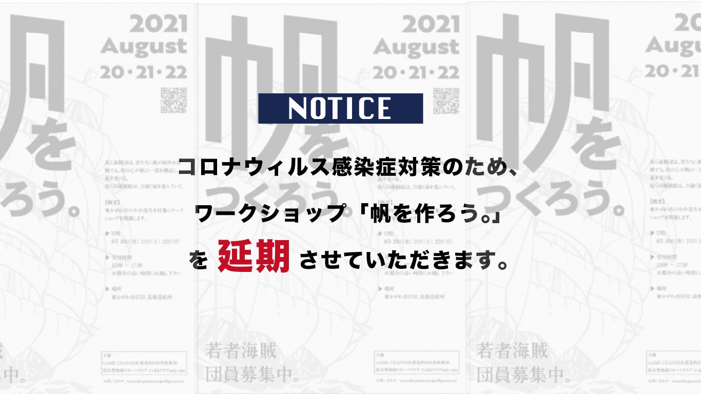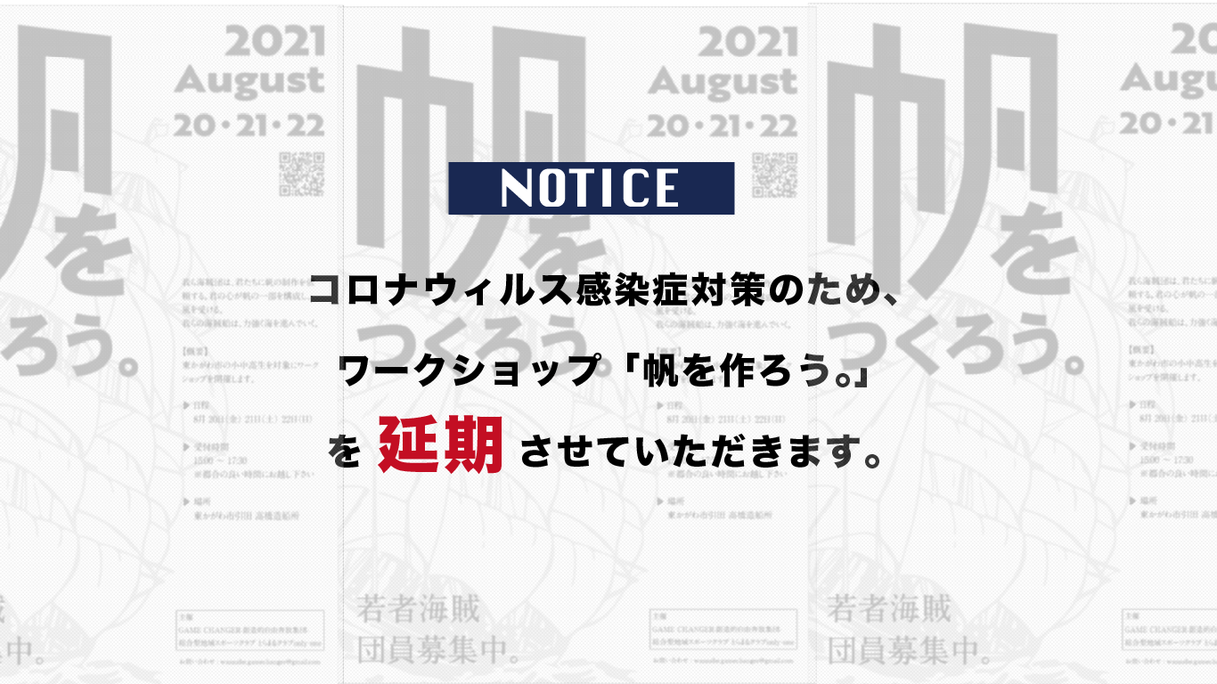 まん延防止等重点措置適応に伴い、8/20~8/22に予定していたワークショップは、延期させていただくことにしました。