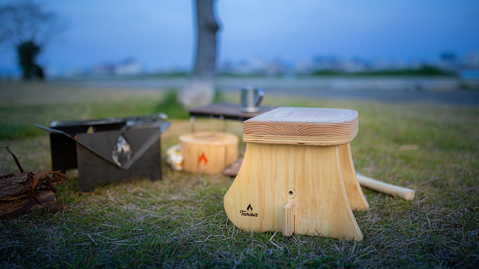 風に揺らぐ焚き火台の炎、その明かりに照らされ映える木の質感。〝Takibis〟のそのコロンと可愛いフォルムには、焚き火を楽しむための色んな工夫や機能が満載されています。