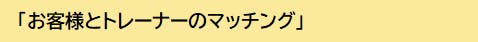 当ジムでは私たちが間に入り、お客様とトレーナーの相性を見させていただく仕組み作りを行います。