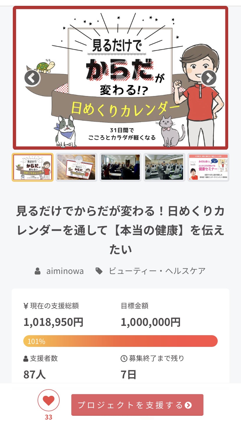 日めくりカレンダークラウドファンディングは、募集まで一週間を残し、本日、目標金額達成することができました!!