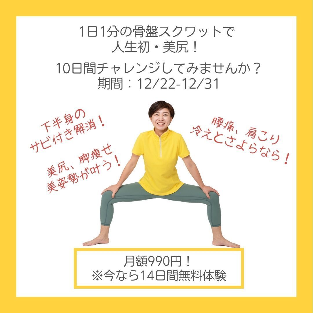 骨盤スクワットができるように下半身のサビ付きをとる10日間のレッスンプログラムです。
