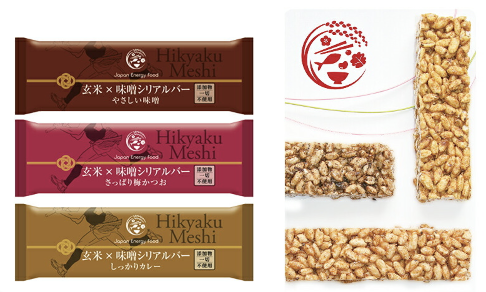 「玄米 × 味噌 シリアルバー」は甘くなく、懐かしい日本の食卓のような味わいです。しっかりとした噛みごたえと、味噌やかつおの旨味が香る、新感覚のシリアルバー です。添加物は一切不使用です。