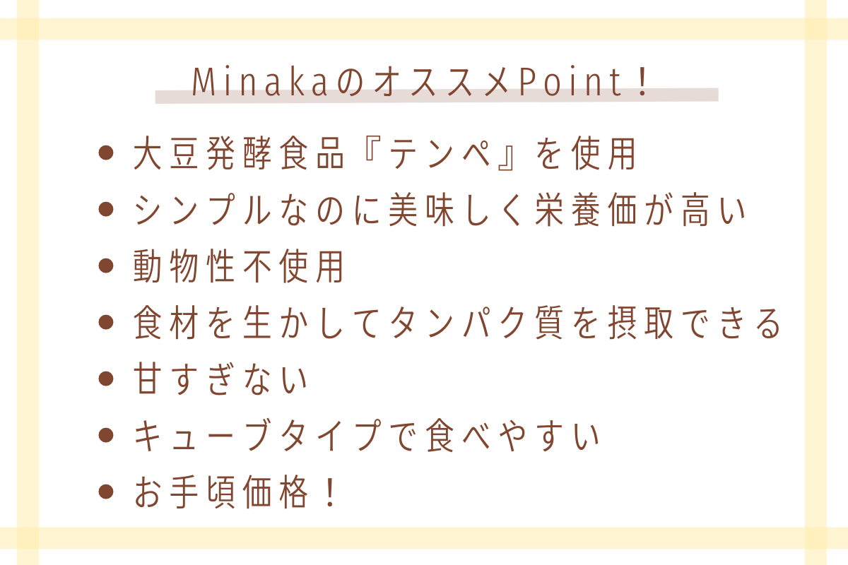 このプロテインキューブの特徴は原材料に使用している大豆発酵食品『テンペ』です。