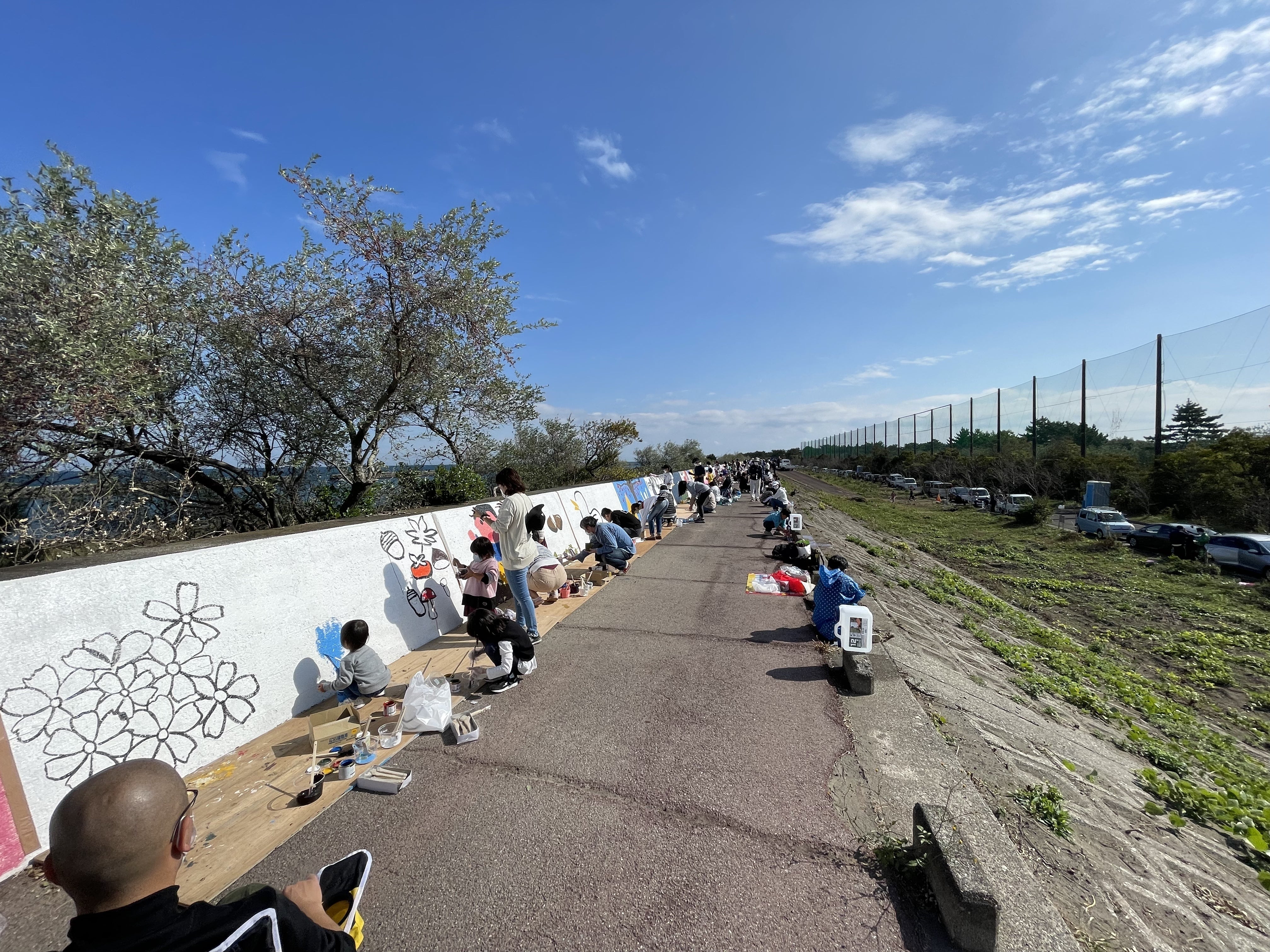 約300名の参加者が集まり、「秋」をテーマにした壁画を今年度は約250mにわたって描きました。