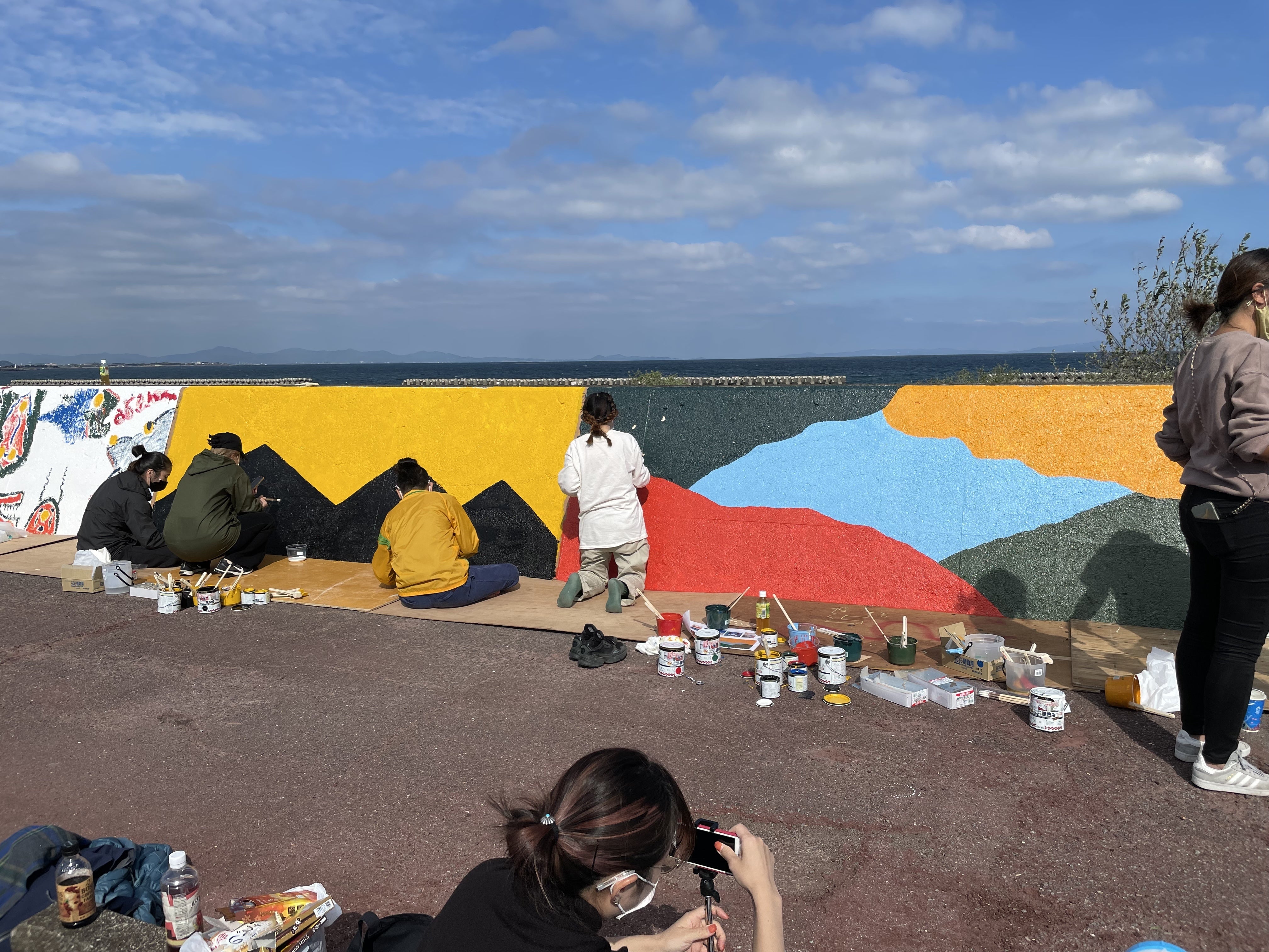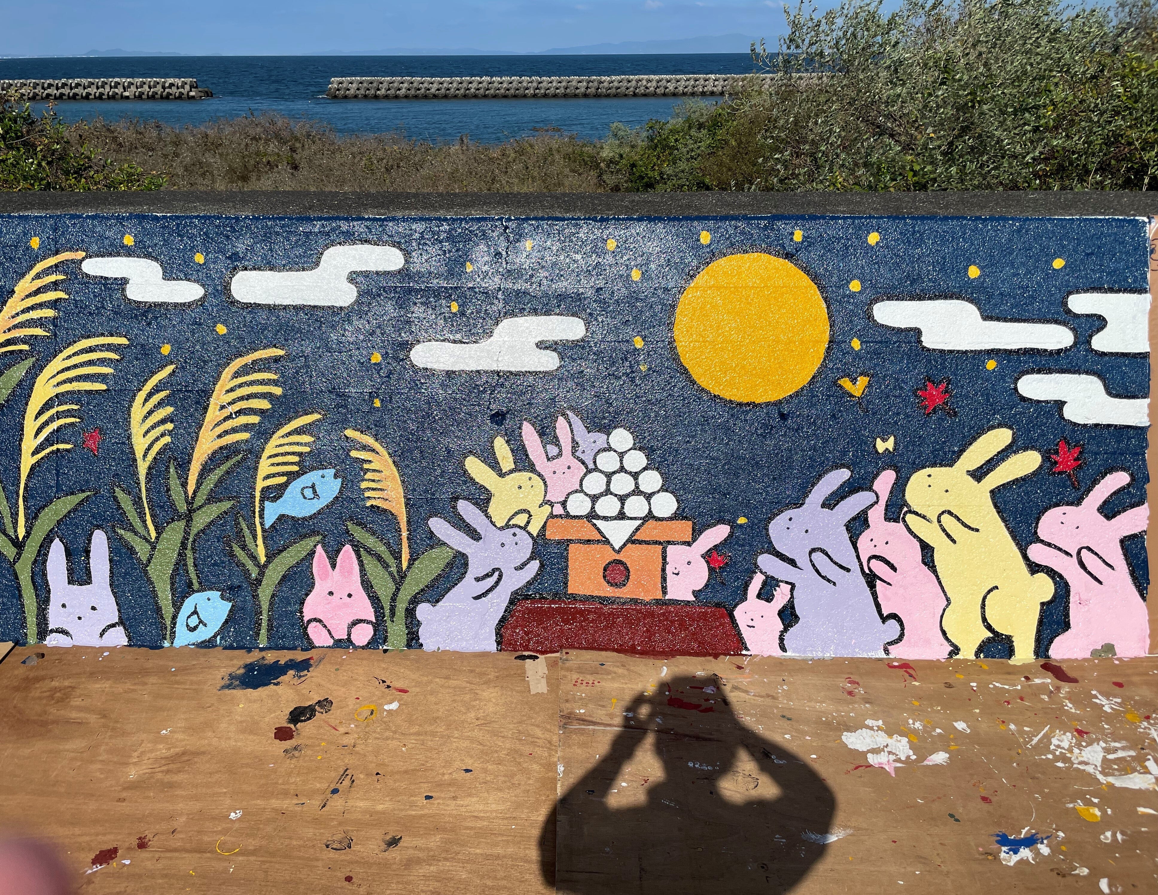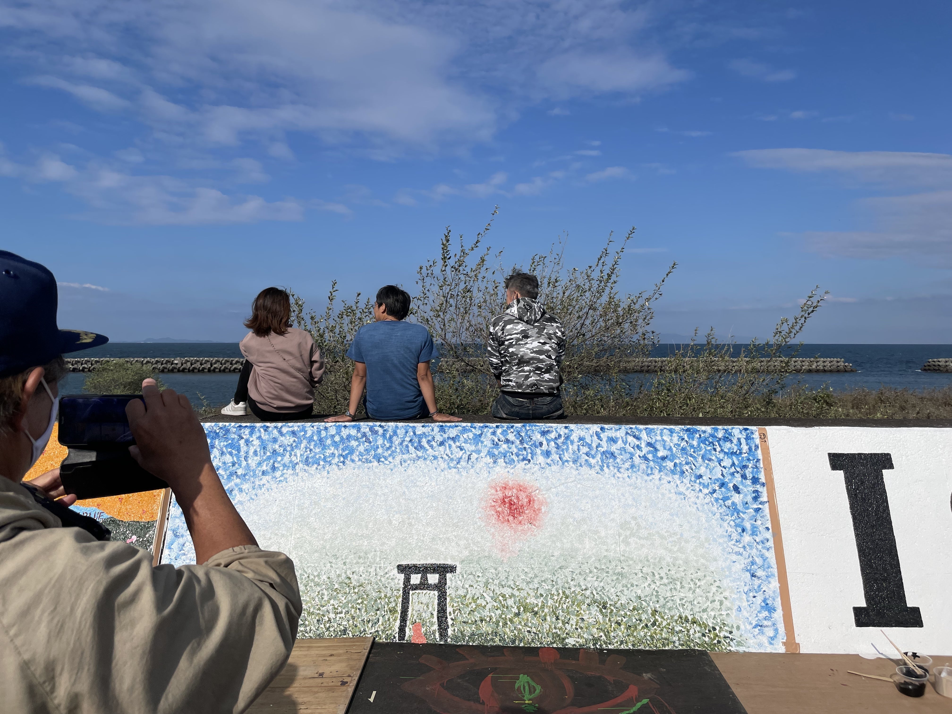 出島海岸の防潮堤に色鮮やかな壁画が連なり、写真撮影や散歩で楽しめる場所になってきております。