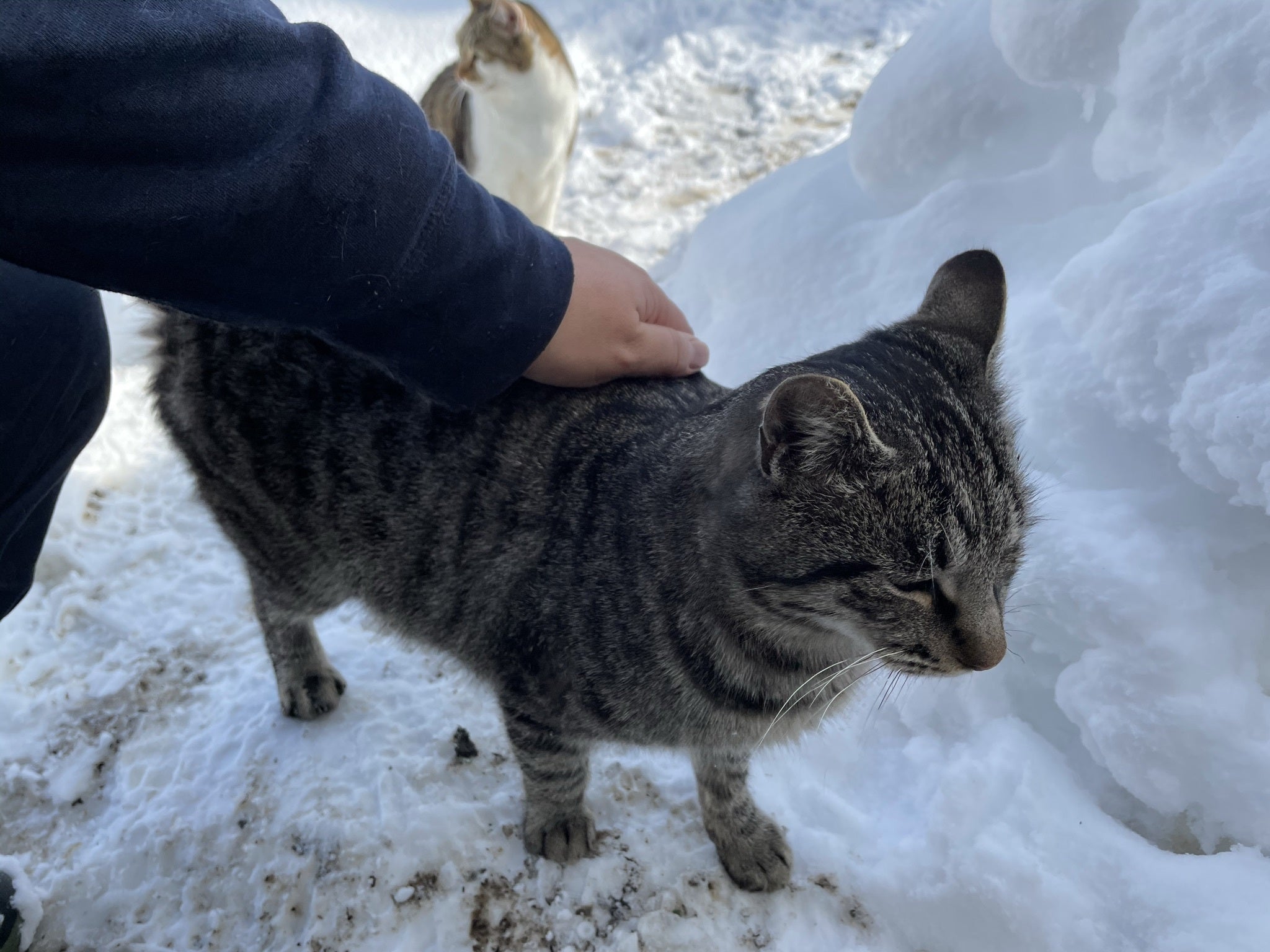 雪がたくさん降るこの地域では、山や畑の民家がない場所でも野良猫達がたくさんいます。
