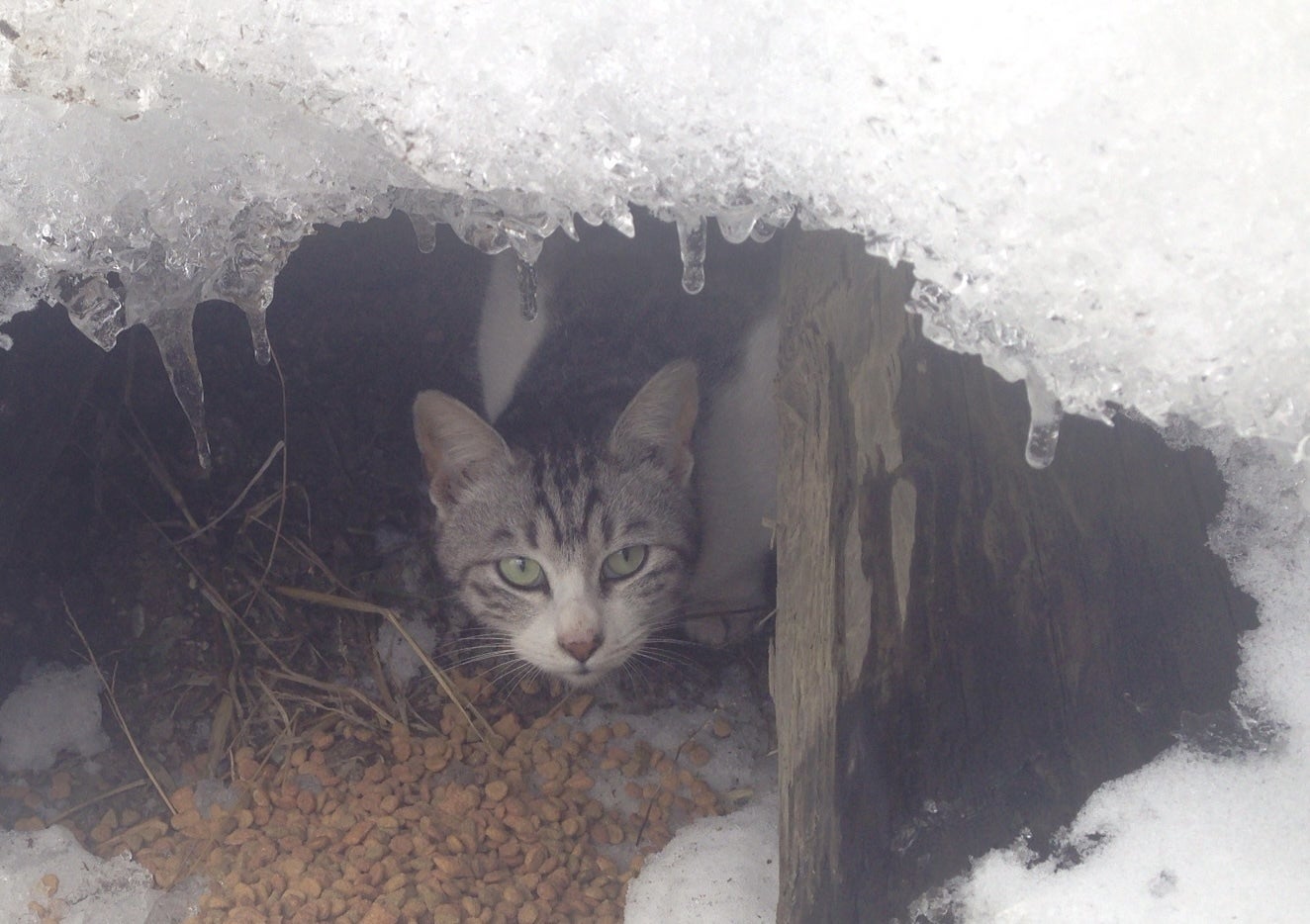 冬場は雪が多いため野良猫たちの食べ物も少なく、逃げ込んだ山小屋から大雪で出られなくなることもあります。