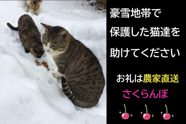 2023/03/23 09:46こんにちは。雪猫シェルターSnow Cherryです。今年も保護猫活動へのご支援を賜るため、クラウドファンディングを開始しました。https://camp-fire.jp/projects/view/663716昨年同様にお礼にさくらんぼが贈られるコースもございます。昨年との変更点としまして、さくらんぼのリターンを全て冷蔵便でお送りすることになりました。近年6月は暑い日が多く、配送時に鮮度が落ち、ご迷惑をおかけしてしまった方がいらっしゃったため今年からは冷蔵でお送りすることになりました。今年も引き続き、朝もぎたてのさくらんぼを産地から直接皆様に発送いたします。また、資材高騰のため一部価格に変更がございます。詳しくは新しいクラウドファンディングのページをご覧いただけますようお願い申し上げます。https://camp-fire.jp/projects/view/663716昨年一年間、雪国で保護猫活動を行えましたのは皆様のご支援があったからこそです。たくさんの救えた命、お空へと見送った命、一言では語ることはできませんが、日々皆様のお力添えのおかげで真摯に活動することができました。また、たくさんのご支援物資をお送りいただき本当にありがとうございました。この場をお借りして御礼申し上げます。こちらでの活動報告はこの投稿で最後になります。一年間、大変お世話になりました。今後は新しいクラウドファンディングの活動報告と、Instagram、CAMPFIREコミュニティで引続き投稿していく予定です。クラウドファンディングを通して皆様と出会えましたことは私達の人生のかけがえのない財産となりました。今後も私達の活動を見守っていただけたら嬉しいです。本当にありがとうございました。雪猫シェルターSnow Cherryお世話係一同 もっと見る春が近づいてきました
