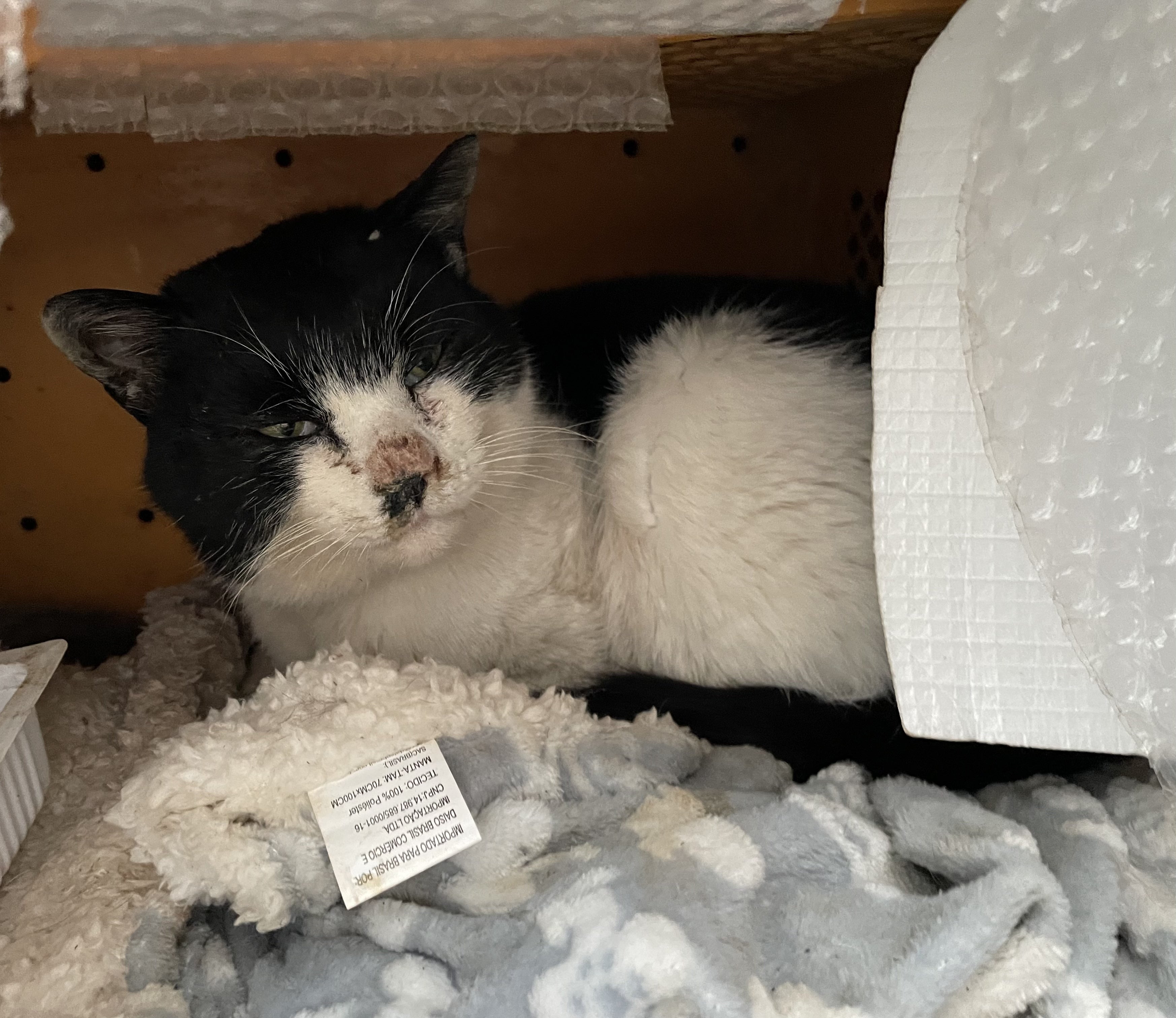 こちらの猫さんは怪我をしているのか、猫BOXの中で休んでいました。