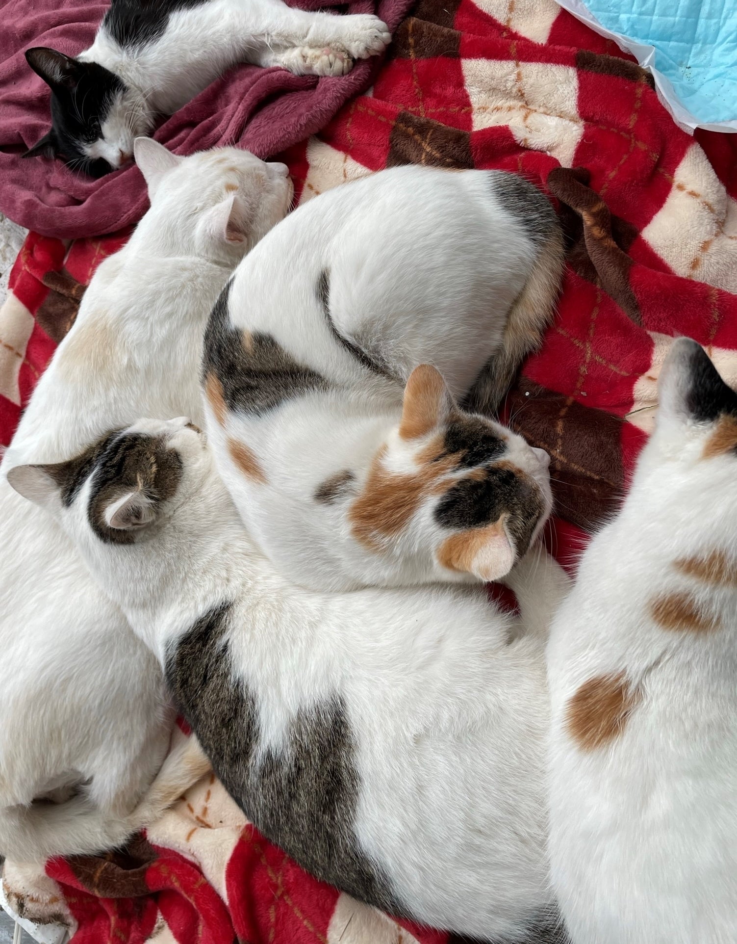 保護した猫達がいるシェルターでは、今日もみんなそれぞれ楽しく過ごしています。