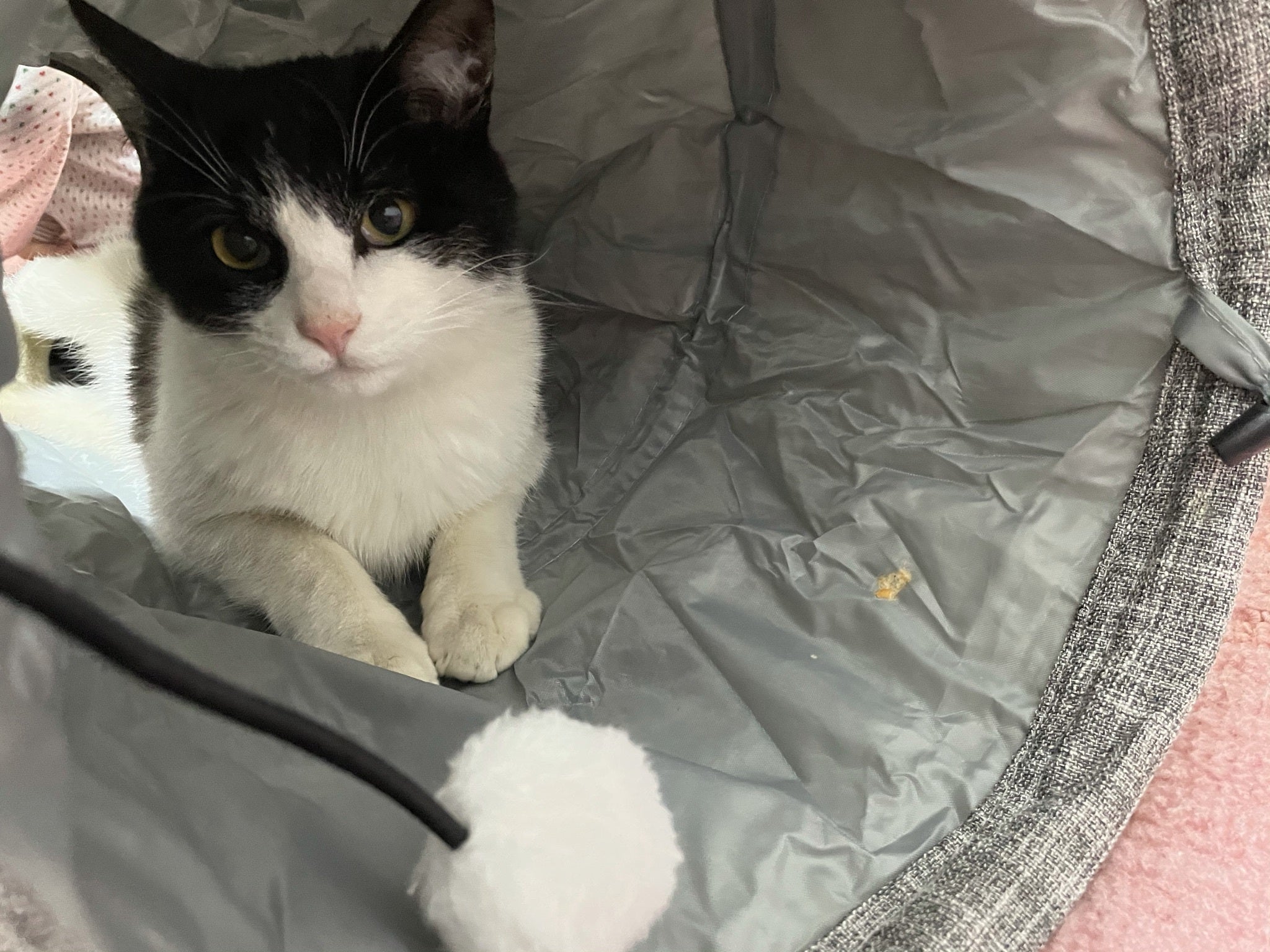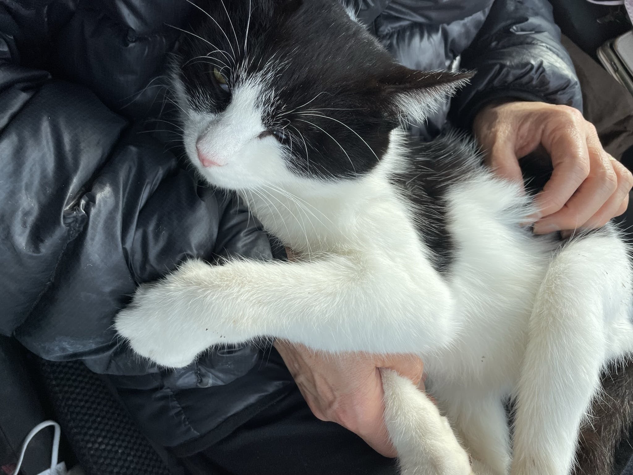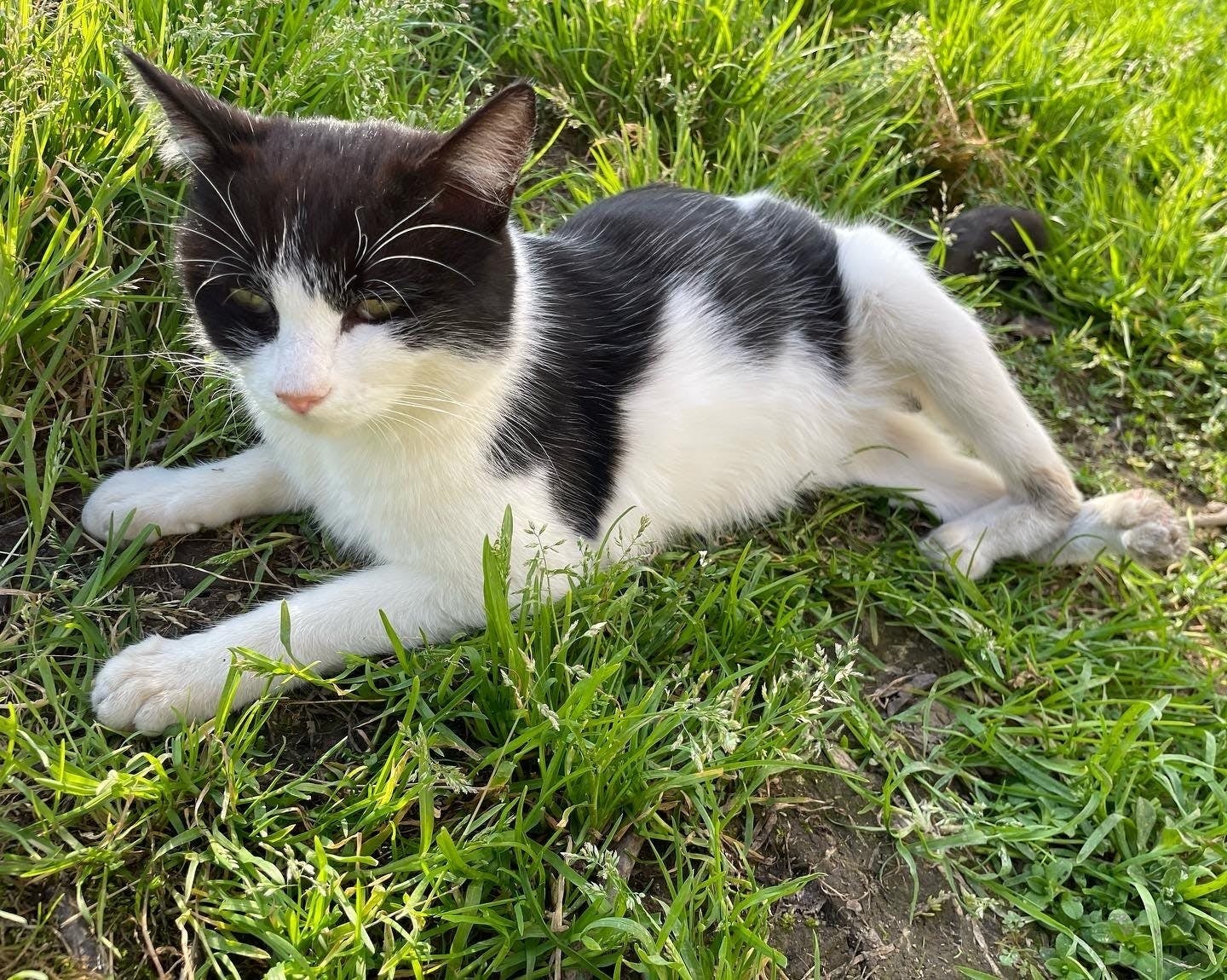 生まれつき後ろ足にハンデがあり、子猫の時に道路の側溝から助けられたさんちゃん。