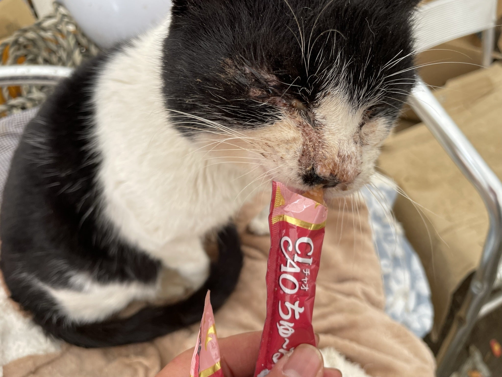 総合栄養食のちゅーると介護食で栄養を与えています。
