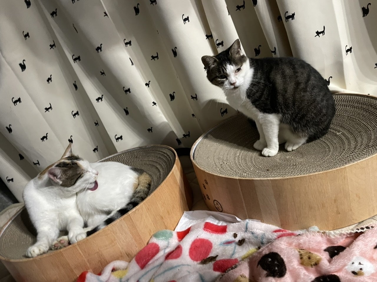 猫達は涼しくなった朝晩は室内で寝るようになりました。