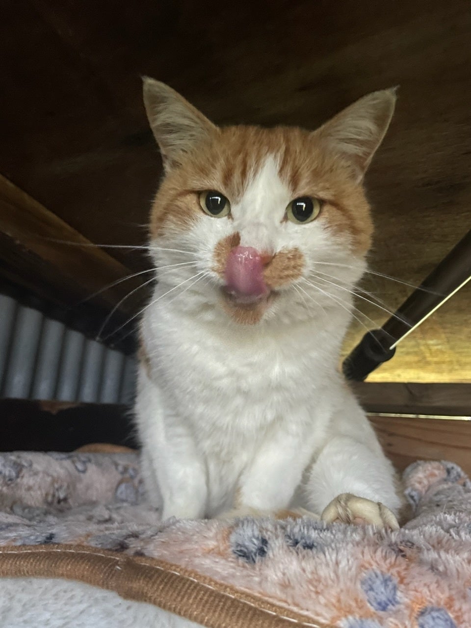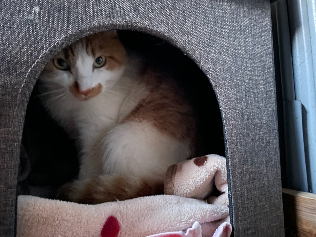 ご寄付いただいた猫BOXで毎日暖かく過ごし、穏やかに療養しています。