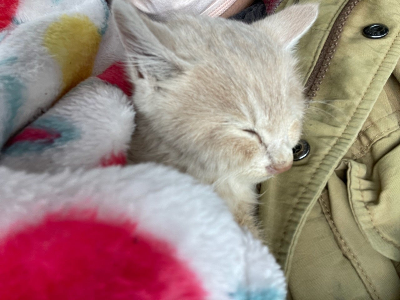 外では寒さで動けなくなっていた子猫を見つけ、すぐに保護しました。