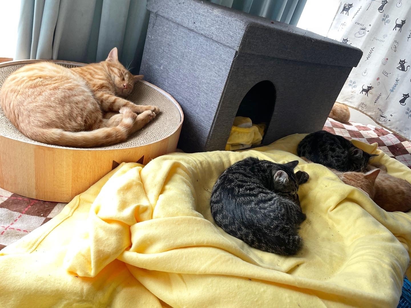 シェルターでは猫達が暖かく過ごしています。