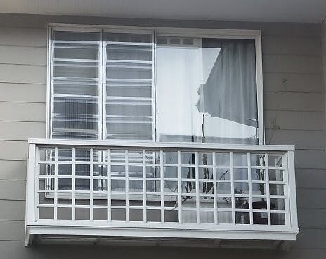 白を基調としたデザイン性の高い窓でECOLO・MATIC・LOUVERを設置いただきました。ルーバーが透明で外観もいい感じだと思います。
