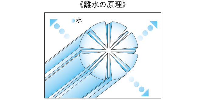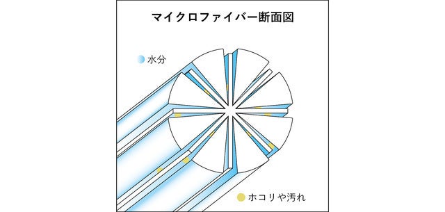 マイクロファイバーは、繊維構造がギザギザしていて空気に触れる面積が大きいため、吸水性が高いのですが、水を分離する離水力が高いのも特徴のひとつです。