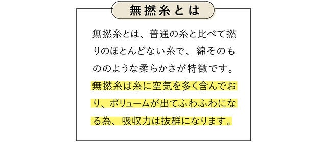 特徴④ 洗うほどふんわり空気を織り込む無撚糸(むねんし)タオル