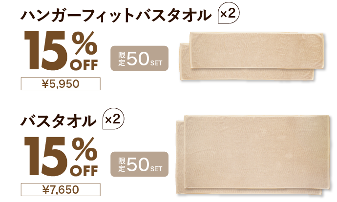 fuwa-suiの吸水力だからこそ1サイズ小さいバスタオルでも十分利用する事ができます。ハンガーフィットバスタオルは、幅がハンガーサイズに設計されています。